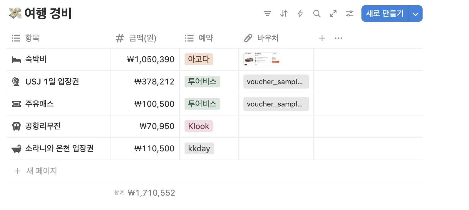 노션 여행 플래너는 확실히 입장권, 바우처 등 파일을 보관하는게 용이하고, 경비 계산도 쉽게 할 수 있고, 다른 여행지를 페이지를 만들어서 모으기만 하면 기록용으로도 쉽게 사용할 수 있어 너무 편리했습니다! PC와 앱 모두 지원하기 때문에 계획을 세울 땐 PC로 여행지에선 모바일로 확인할 수 있어 그 점도 아주 편했어요.