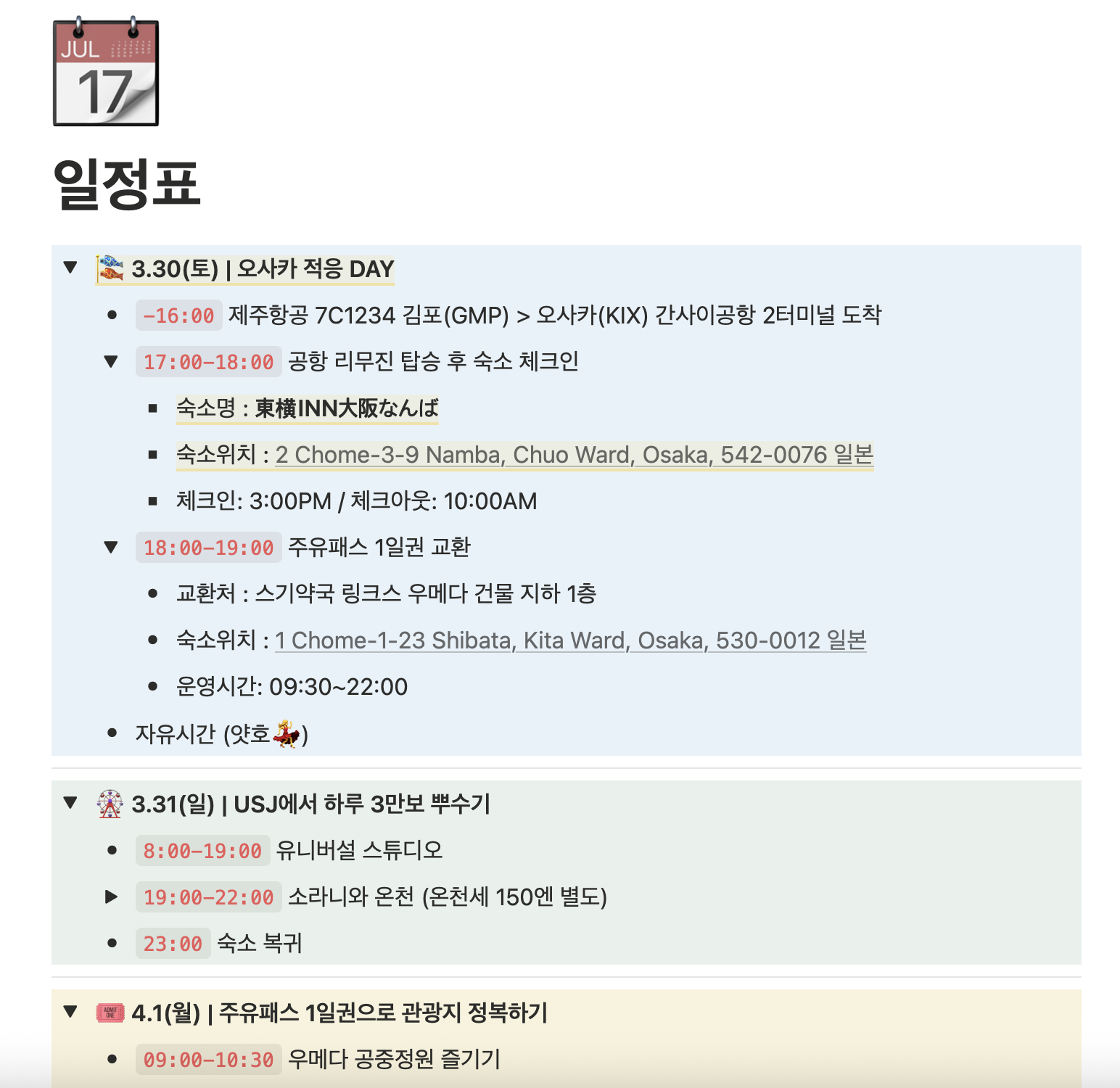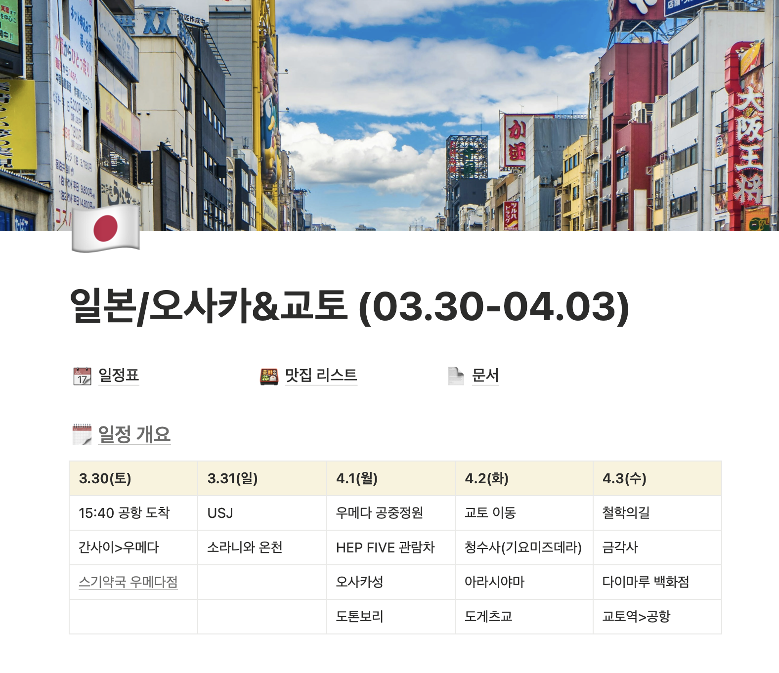 일본/오사카&교토 (03.30-04.03) | Notion
