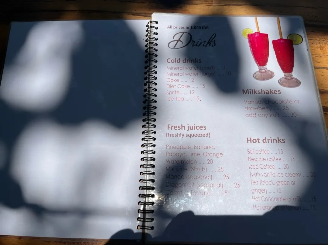 음료로 망고쥬스와 제로콜라도 시켰는데요. 발리는 보편적으로 과일 쥬스가 맛있는 편은 아니였어서 😅 음료로 콜라를 자주 먹었던 것 같아요