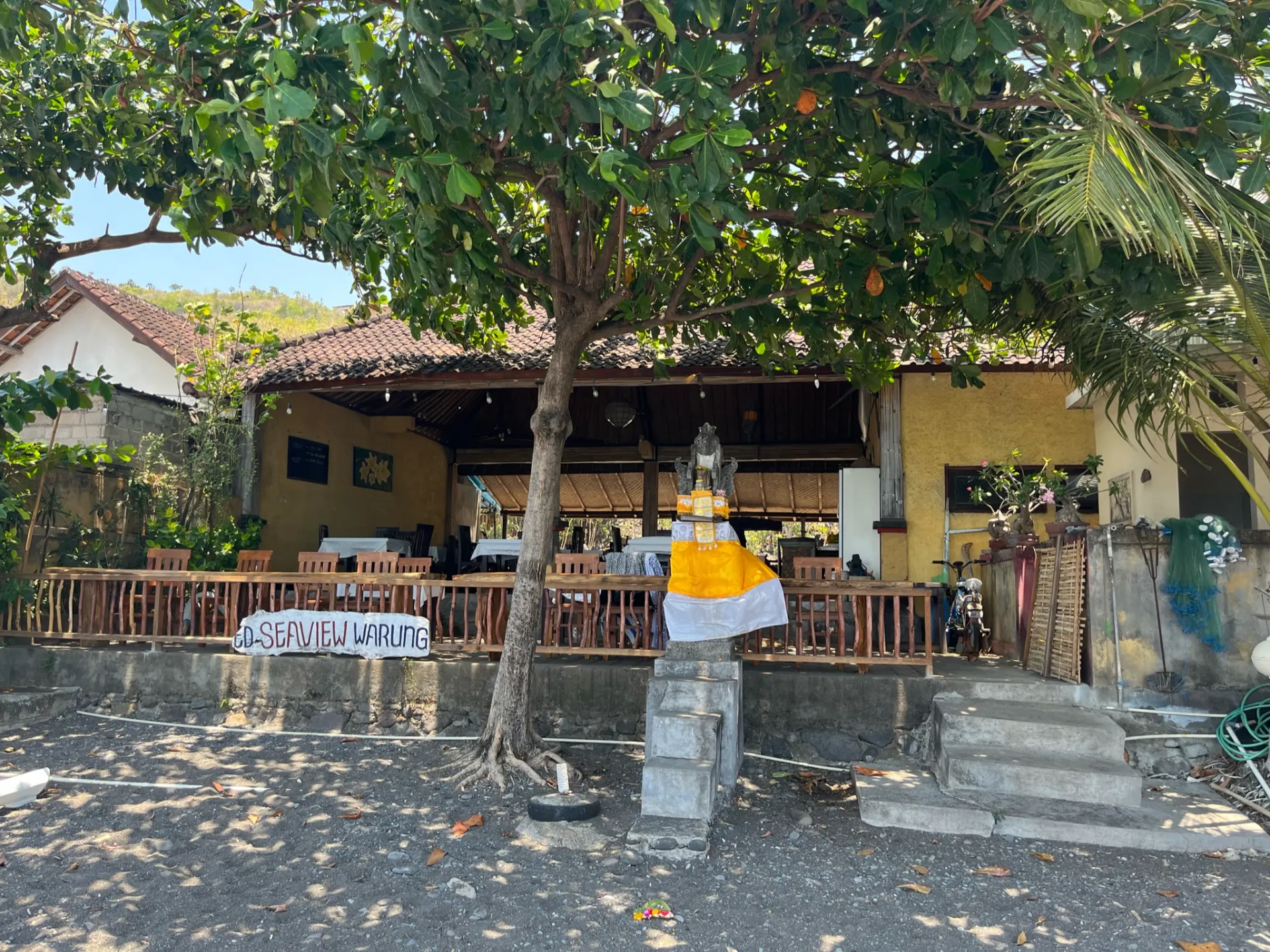 Warung Seaview Amed 는 아메드 비치랑 연결되어 있어서 해변을 따라가다 보면 만나실 수 있어요. 이름에 걸맞게 바다를 바라보며 앉을 수 있는 자리도 있어서 낭만이 있는 식당 입니다 ㅎㅎ