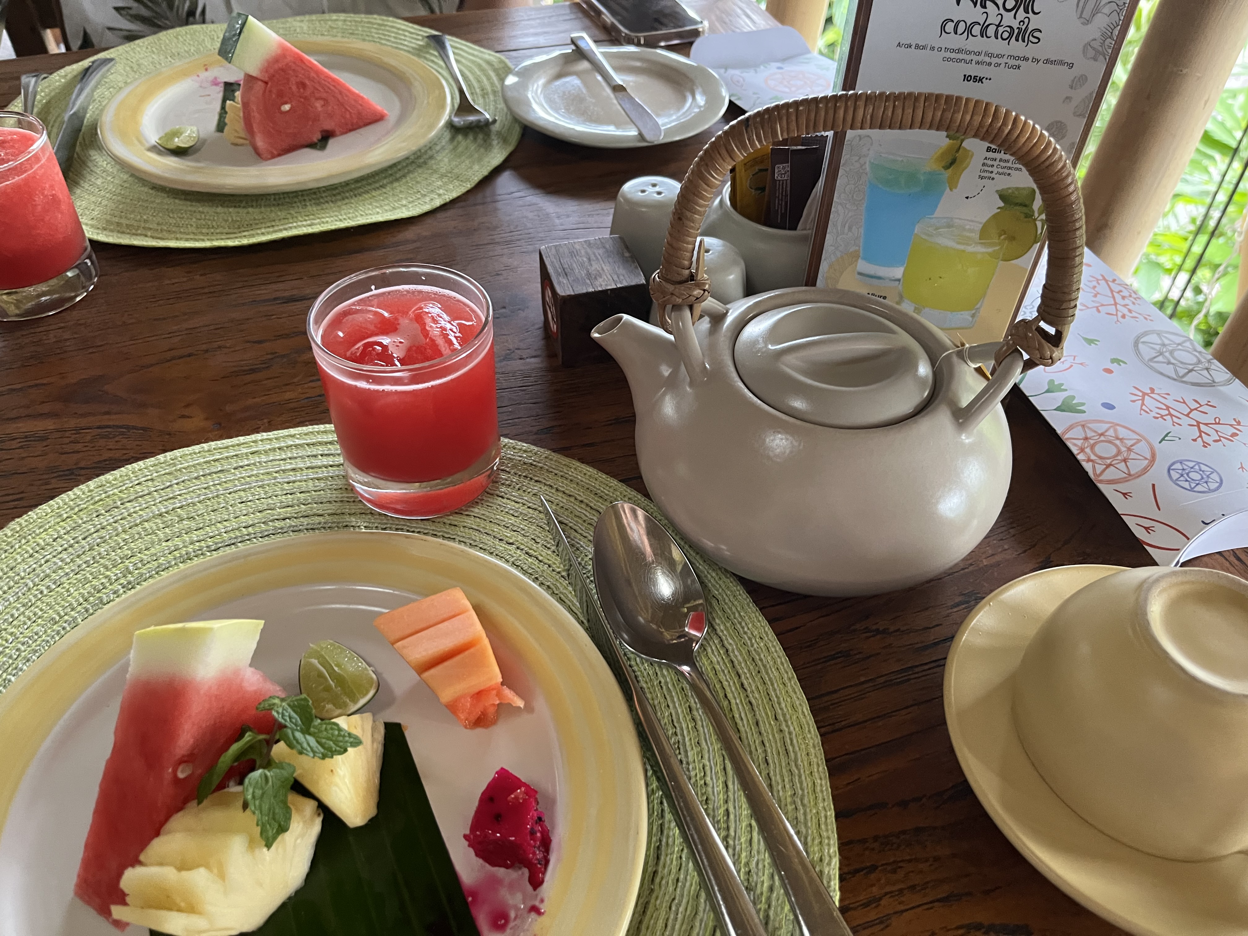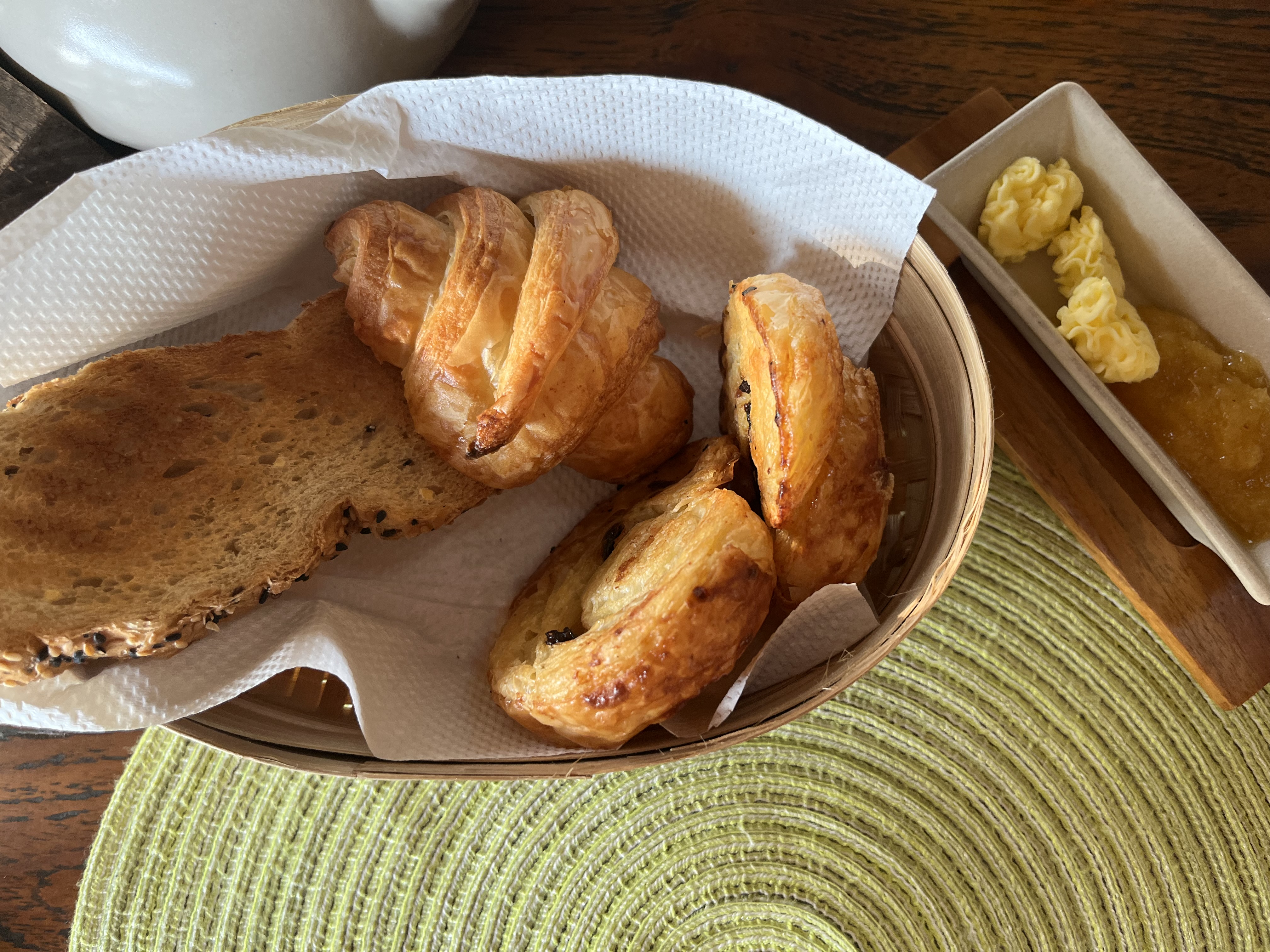귀여운 빵 용기와 버터 그릇, 식기도 예쁘면 눈이 가는데 귀여워서 바로 사진 하나 찍었어요. 발리에서는 이런 대나무 소재로 된 물건들을 잘 활용해서 주셔서 휴양지 온 느낌도 물씬 나더라구요.