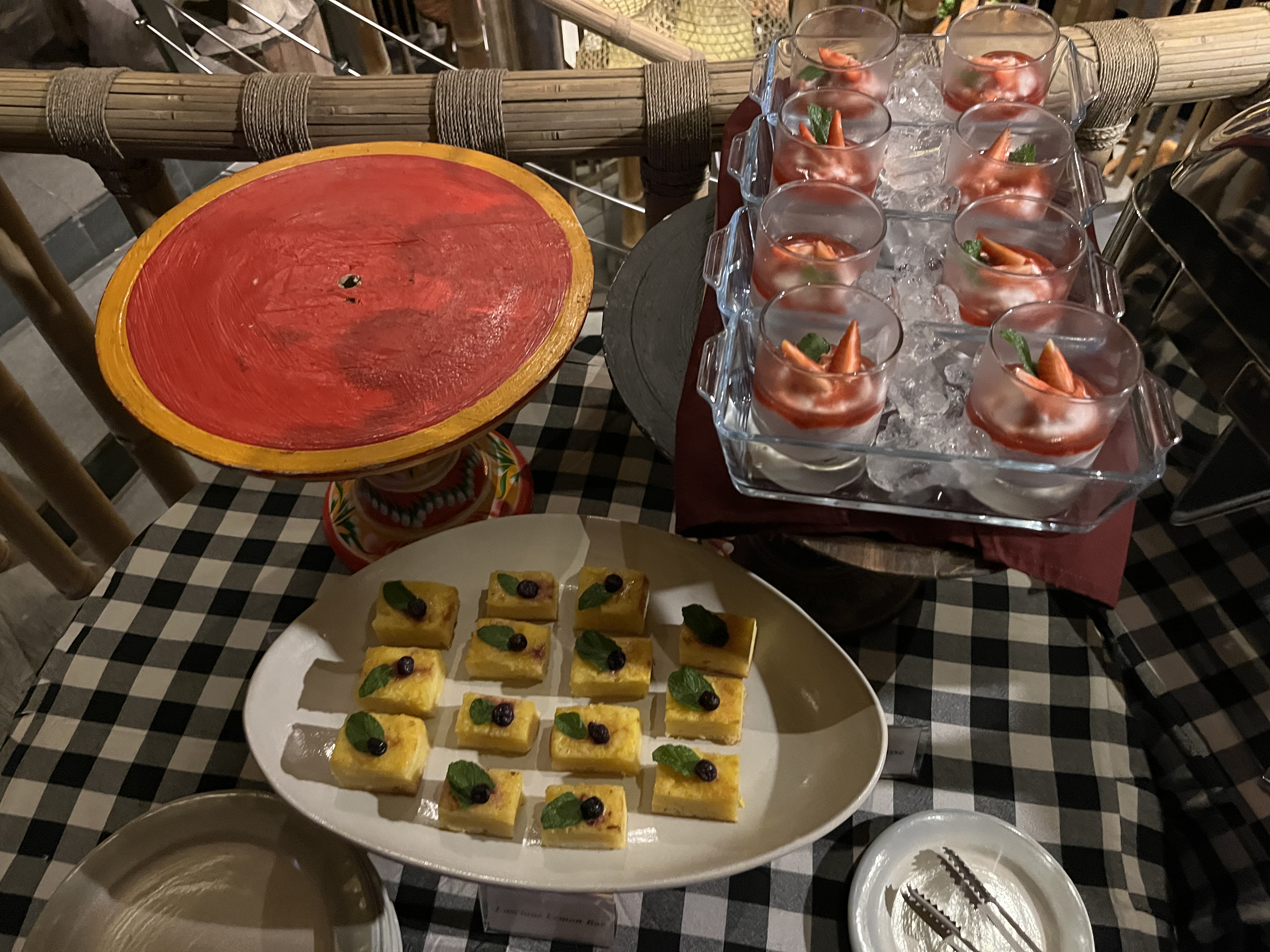 마지막 테이블 하나는 디저트가 준비되어 있었고, 왼쪽 위에 비어있는 것은 수박인데 후식이다보니 다른 메뉴들에 비해 늦게 준비되었어요. 수박이랑 용과가 번갈아 가며 과일로 준비되었고, 디저트도 다 비워지면 종류가 조금 바뀌어서 채워졌어요.