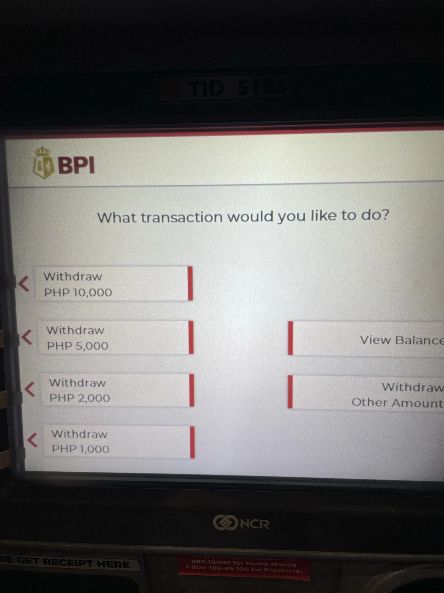 ATM 은 250페소의 수수료가 부과되기 때문에 인출할 금액 + 250 페소가 트레블월렛에 충전이 되어 있어야 해요.