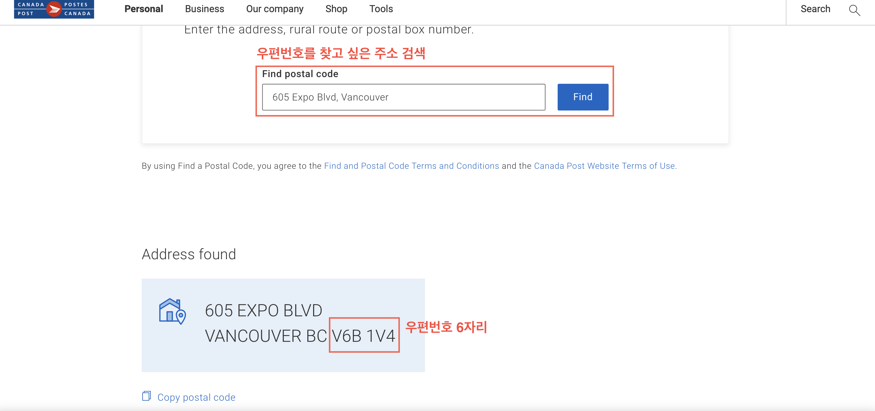 1. Canada Post에서 우편번호 조회하기
