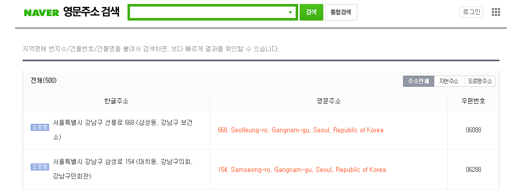 🔗네이버 영문주소 검색 : https://rb.gy/kugko