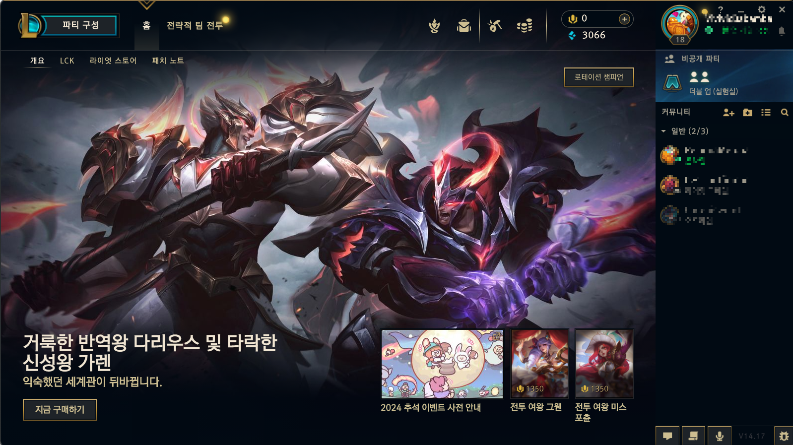 한국어 세팅된 롤 클라이언트 화면입니다. 요새 톡톡이의 시험모드를 자주 하는데 한국어로 볼 수 있어 아주 편하더라구요. 여러분도 즐겜 하세요. :)