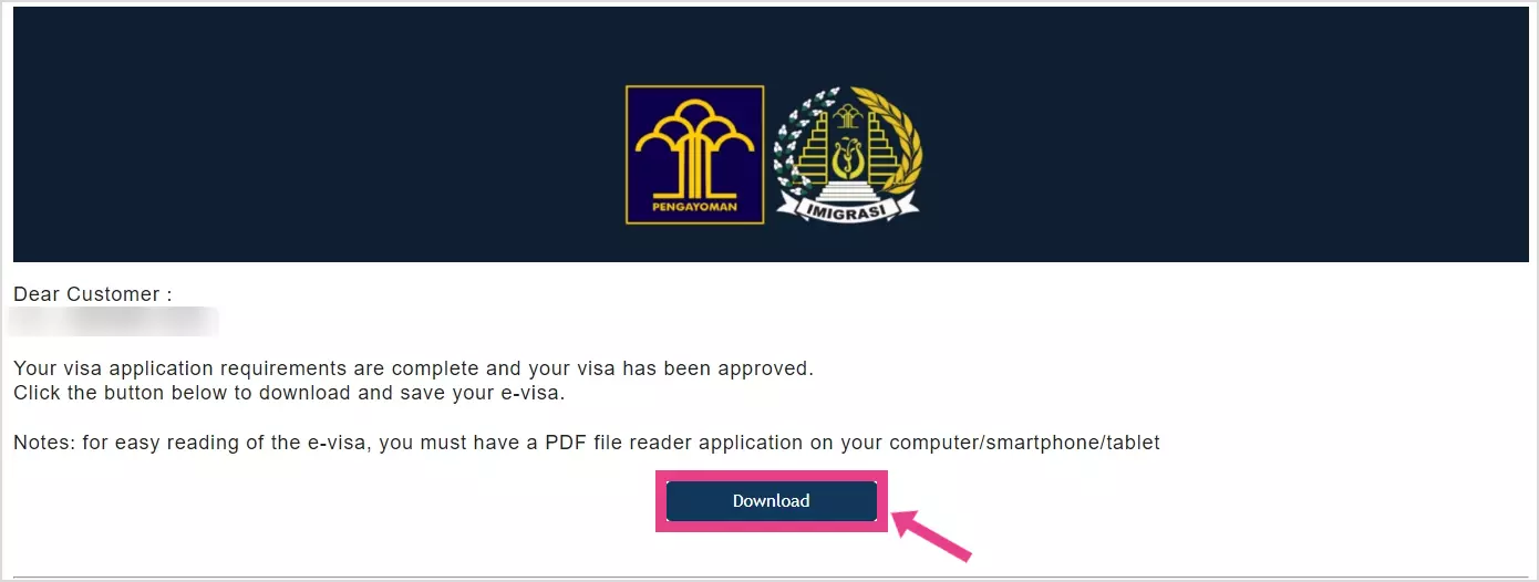 전자도착비자(E-VOA)를 다운로드할 수 있는 안내 메일이에요. 다운로드 통해서 전자도착비자를 출력 및 스마트폰에 저장해 입국하실 때 보여주시면 됩니다.